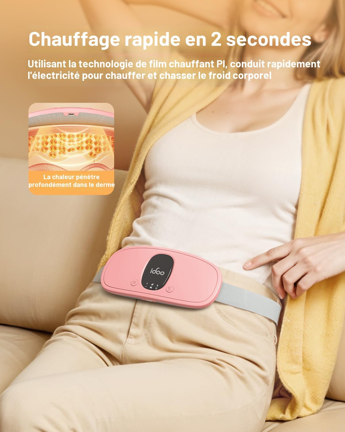 Cette ceinture chauffante menstruelle diffuse une chaleur douce et apaisante pour détendre vos muscles et soulager les douleurs abdominales et lombaires. Portable, réglable et facile à utiliser, elle devient votre alliée pendant vos règles.